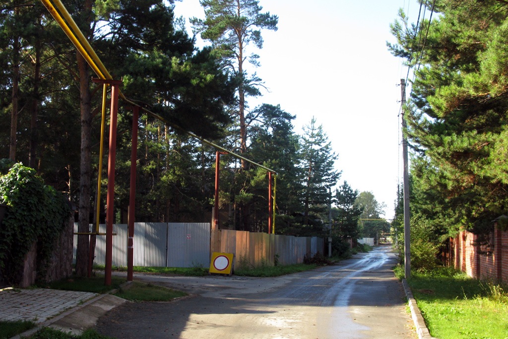 Мы попытались разыскать хижину в курортных «джунглях» Бердска. И нашли огороженный 2-метровым забором участок. Место, кстати, похоже на то, что указывали общественники, когда писали, что Марина — супруга помощника прокурора Дмитрия Красноухова. За забором удалось заснять некое сооружение типа «строительный вагончик».