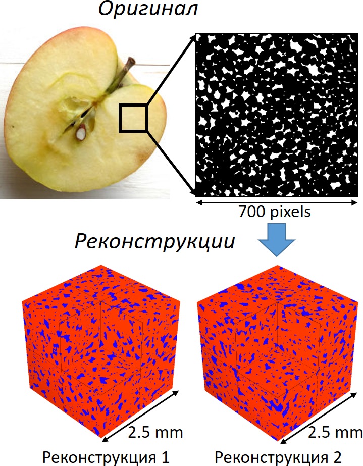 Ученые ИФЗ РАН применили компьютерный алгоритм, позволяющий реконструировать полную 3D-модель еды по двумерному изображению ее внутреннего строения. В своей работе исследователи использовали метод вероятностной реконструкции, который ранее показал свою эффективность в описании структуры пород, содержащих нефть и газ.