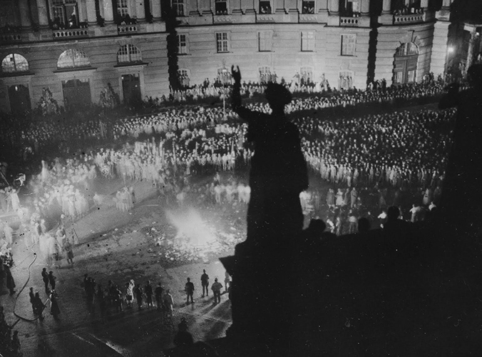 В 11 часов вечера 10 мая 1933 года берлинские студенты отправились на Опернплац, держа в руках факелы и потрясая бюстом основателя Института сексуальных наук Магнуса Хиршфельда, который напоминал отрубленную голову свергнутого монарха. Позже бюст был брошен в огонь вместе с книгами из института. В ту же ночь сожжение книг состоялось еще в девяноста городах Германии. Немецкий студенческий союз составил подробные планы по организации и координации сожжения книг. Оно проводилось в центральных, общественных местах, причем во многих городах для усиления эффекта использовались мощные прожектора. Многие костры были сложены за несколько дней и украшены фотографиями Ленина и флагами Веймарской республики.