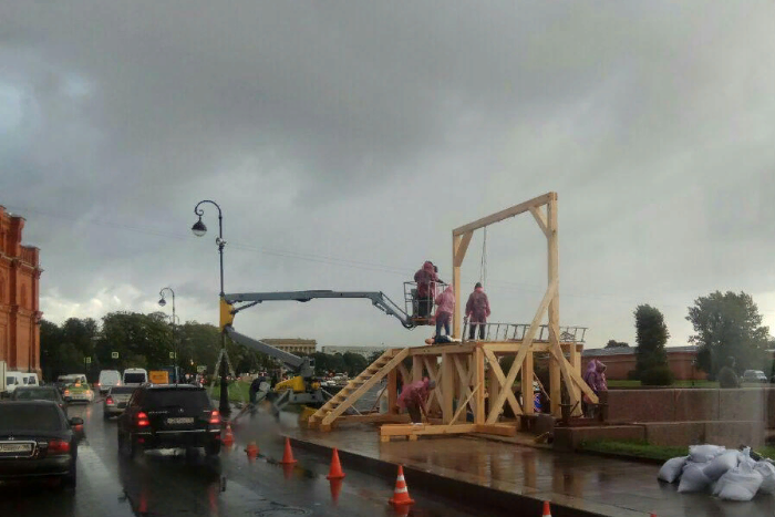 У Петропавловской крепости установили деревянную виселицу