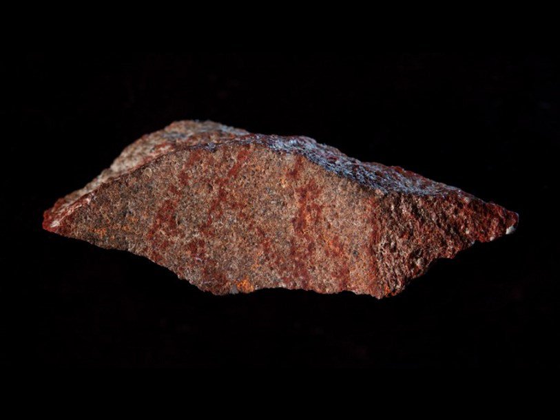 Ученые из ЮАР, Франции, Норвегии и Швейцарии рассказали о находке, сделанной в 2011 году в южноафриканской пещере Бломбос. На небольшом куске камня были обнаружены проведенные красной охрой линии, которые авторы исследования считают самым древним известным рисунком.