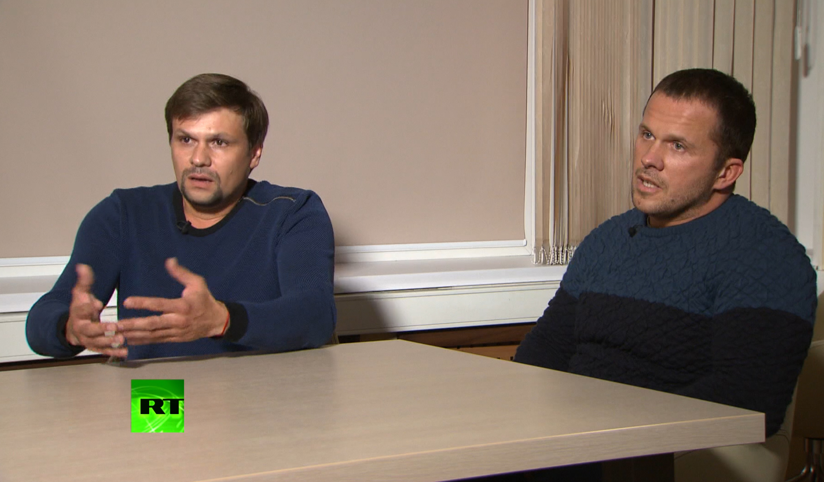 Два человека, известные как Александр Петров и Руслан Боширов – подозреваемые Великобританией в отравлении двойного агента Сергея Скрипаля и его дочери Юлии в городе Солсбери в начале марта, дали интервью телеканалу RT на следующий день после того, как президент России Владимир Путин сообщил, что знает об этих двоих, что они гражданские лица, не причастные к преступлению.