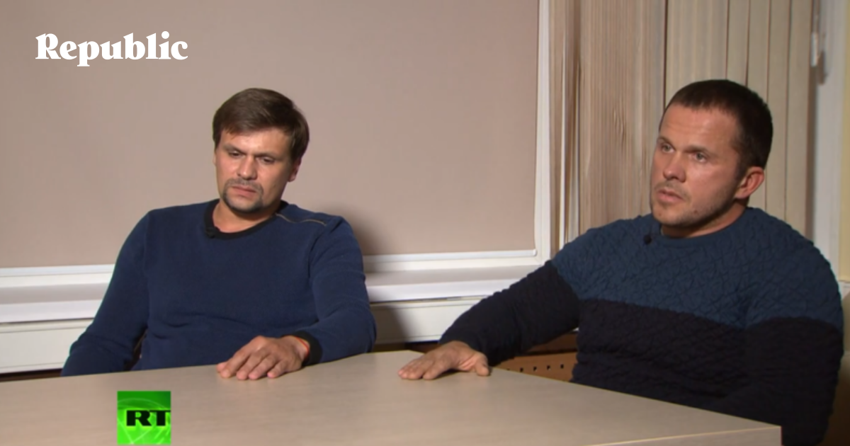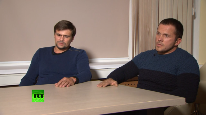 Александр Петров и Руслан Боширов, подозреваемые в причастности к делу об отравлении в Солсбери. Фото: скриншот RT