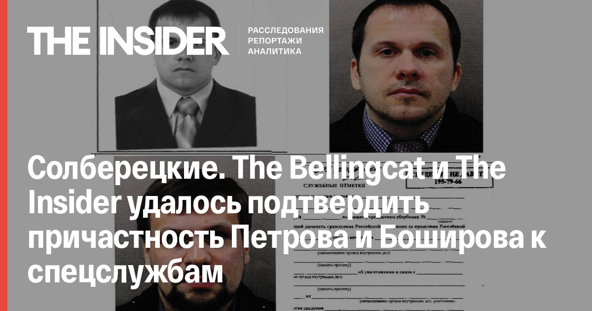 Солберецкие. The Bellingcat и The Insider удалось подтвердить причастность Петрова и Боширова к спецслужбам