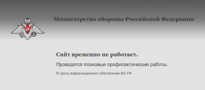 У Министерства обороны России перестал работать сайт. При попытке сейчас зайти на него пользователи видят фразу «Сайт временно не работает. Проводятся плановые профилактические работы».