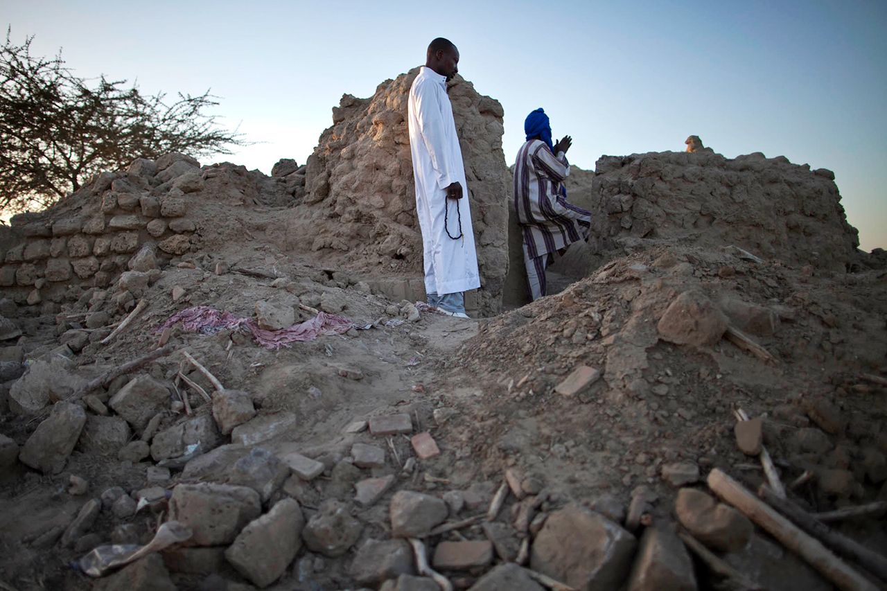 Союз туарегов с исламистами быстро распался, и Тимбукту остался под контролем первых. Боевики сорвали ворота мечети Сиди Яхья XV века (местные жители не открывали их веками, веря, что иначе наступит конец света) и разрушили семь усыпальниц суфийских святых, в том числе мавзолей Сиди Махмуда Бен-Амара, особо чтимого горожанами.