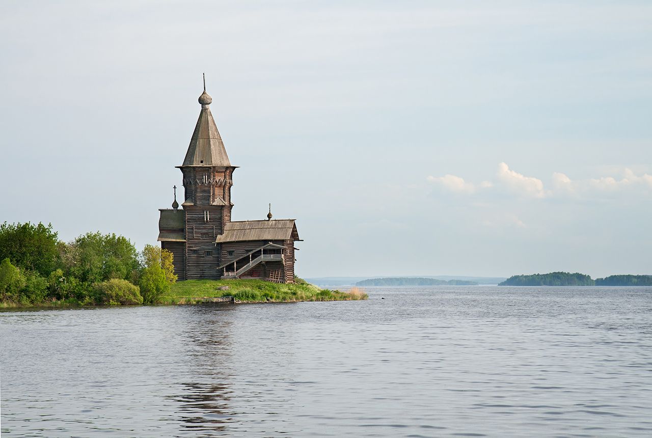 Храм Успения Пресвятой Богородицы в карельском городе Кондопога был одним из самых высоких деревянных зданий в России. По меркам деревянного зодчества он дожил до наших дней в исключительно хорошем состоянии. Церковь построили в 1774 году; в ней сохранился барочный иконостас и расписной потолок-«небо» с композицией «Божественная литургия» — такого не было ни в одном другом действующем храме.