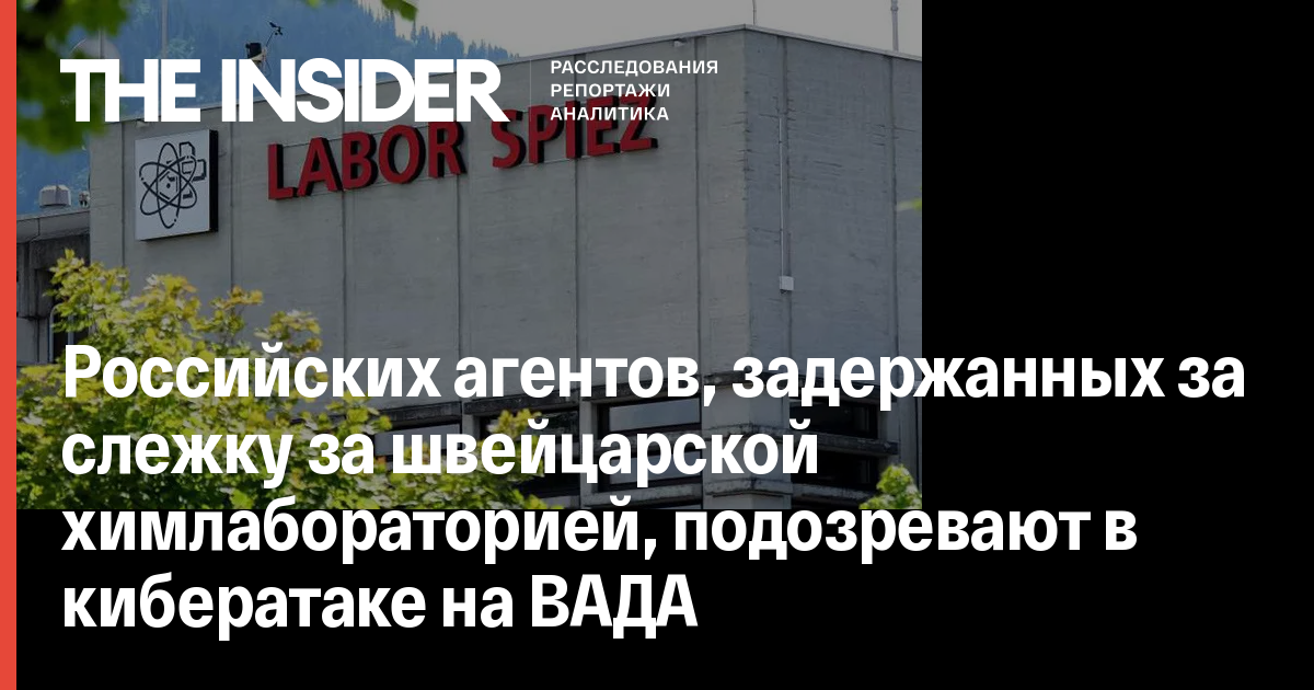 Двое российских агентов, которых задержали за слежку за швейцарской лабораторией Spiez и выслали в РФ, подозреваются по делу о кибератаке на Всемирное антидопинговое агентство (ВАДА). Об этом рассказали в прокуратуре Швейцарии.