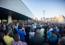 В знак протеста кандидат-коммунист объявил голодовку. У здания краевого заксобрания днем был устроен пикет численностью не меньше 150-200 человек.