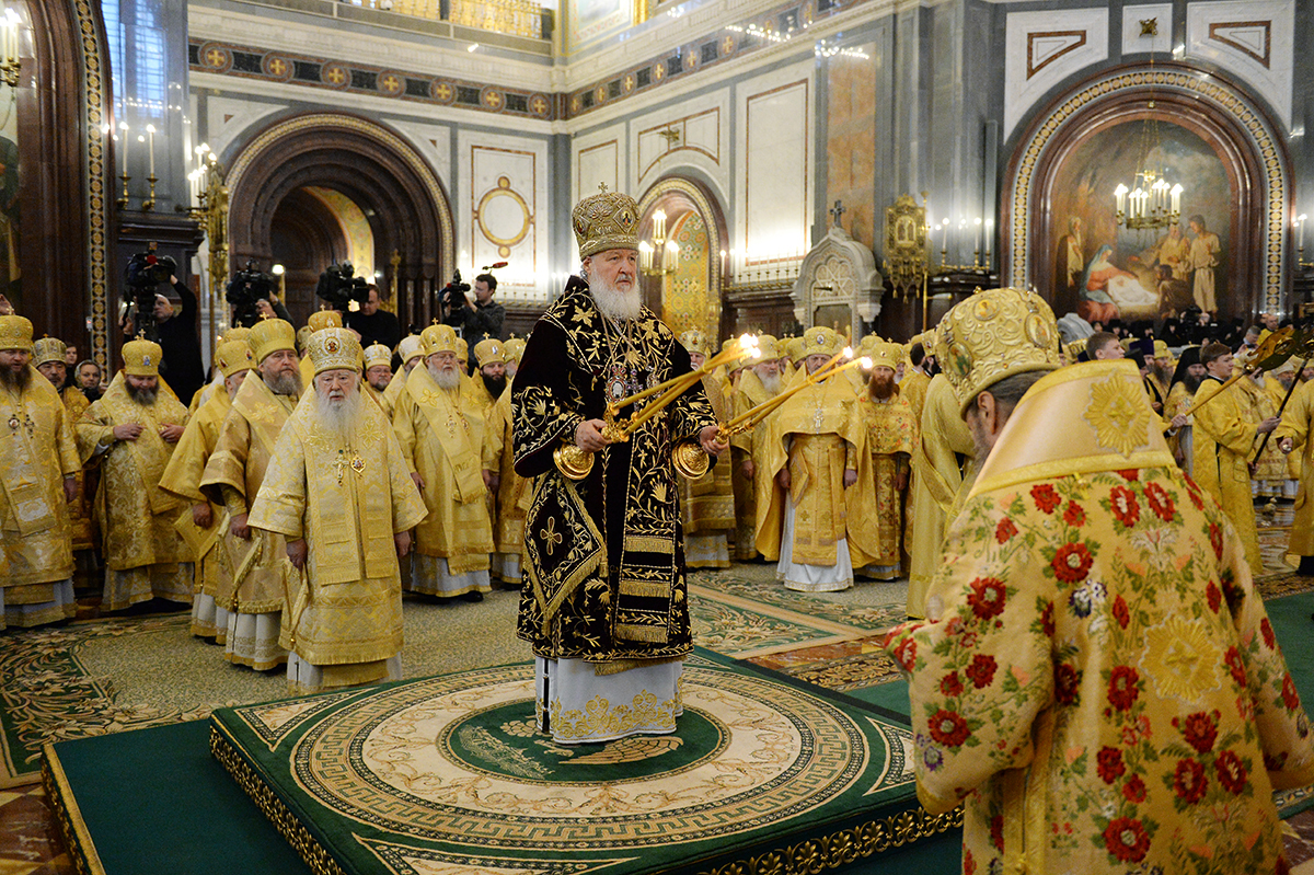 Святейший Патриарх Московский и всея Руси Кирилл совершает Божественную литургию в кафедральном соборном Храме