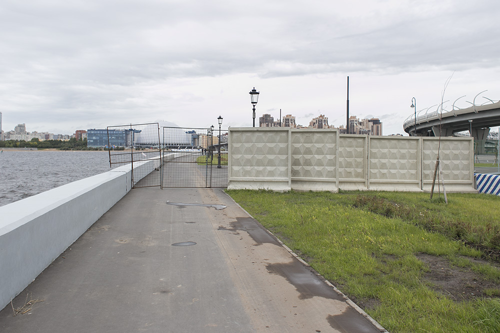 В комитете имущественных отношений «Бумагу» заверили, что доступ к звоннице открыт для всех. На самом деле это не так — корреспонденту «Бумаги» не удалось попасть к подножию арки из-за того, что она огорожена высоким забором по всему периметру. В комитете имущественных отношений это объяснили тем, что территорию Приморского парка Победы, где находится звонница, всё еще обустраивают под стадион «Санкт-Петербург».