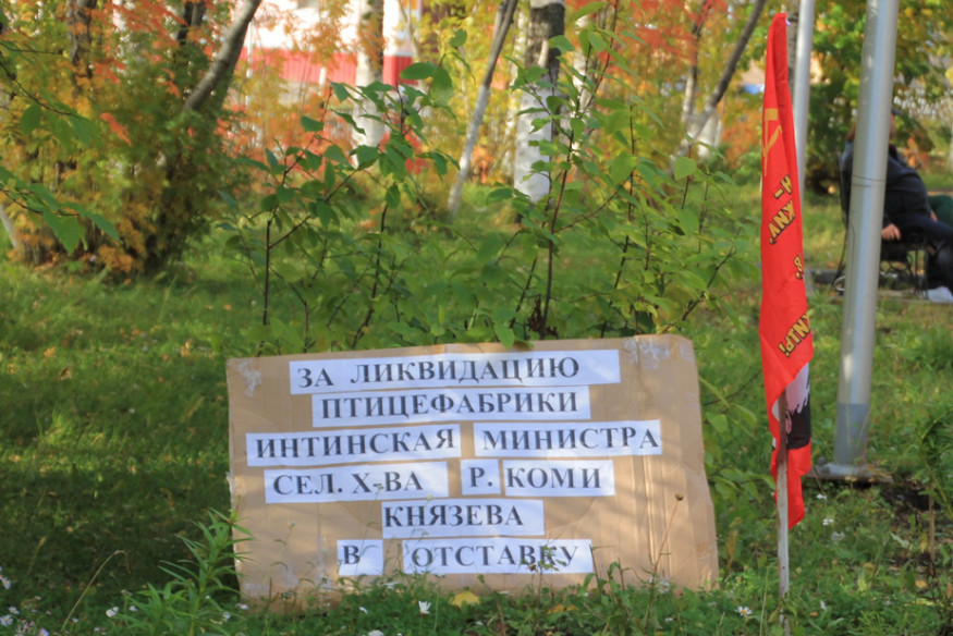 Участники митинга потребовали уволить министра сельского хозяйства и потребительского рынка Коми Анатолия Князева, который, по мнению митингующих, своими действиями нарушил указания президента России Владимира Путина и председателя правительства Дмитрия Медведева о развитии сельского хозяйства. По сведениям интинцев, Князев дал указание вдвое ограничить финансовую помощь агрокомплексу «Инта Приполярная» для лоббирования интересов птицефабрики «Зеленецкой», которая недавно в цехах бывшей птицефабрики «Сыктывкарской» стала производить куриное яйцо, и ей понадобился интинский рынок сбыта продукции вместе с городами Усинском, Печорой и Воркутой для получения дотаций. «Практически агрокомплекс Инты сейчас обанкрочен, нет денег на закупку комбикормов, и министр Князев все-таки добился того, что начался забой кур-несушек. Из 70 тысяч уже забито 40 тысяч», — рассказал Василий Киреенко. Он уверен, что скоро Инта лишится своего свежего яйца.