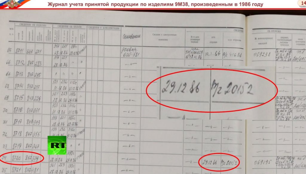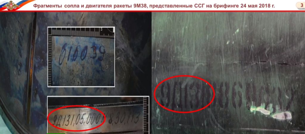 - С помощью уникального номера на корпусе двигателя ракеты, обнародованного Международной следственной группой в мае, Минобороны выяснило, что ракету выпустили на Долгопрудненском научно-производственном предприятии (производит «Буки»). Архивные документы предприятия (Минобороны специально рассекретило их) позволили точно определить бортовой номер самой ракеты и часть, которая ее получила.