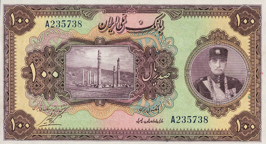 Банкнота в сто риалов с изображением тридцать четвертого шаха Ирана — Резы Шаха Пехлеви, 1932 год