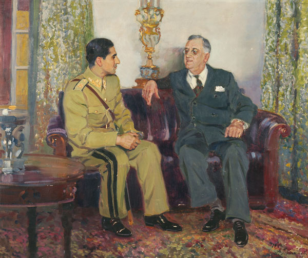 Встреча президента США Франклина Делано Рузвельта и шаха Ирана Мохаммеда Реза Пехлеви. Художник: Герасимов А.М., 1944 год