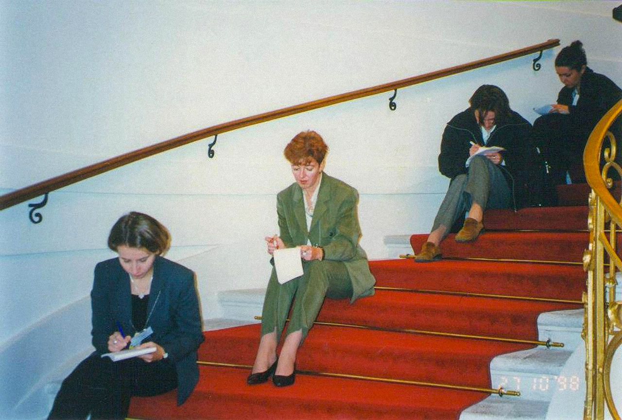 «Она была самым молодым журналистом в пуле, очень веселой маленькой девочкой. Человек она в общении прекрасный, и с ней было здорово ездить в поездки», — вспоминает Куцылло, работавшая в то время корреспондентом газеты «Коммерсант» (сейчас она главный редактор сайта «МБХ-медиа»).