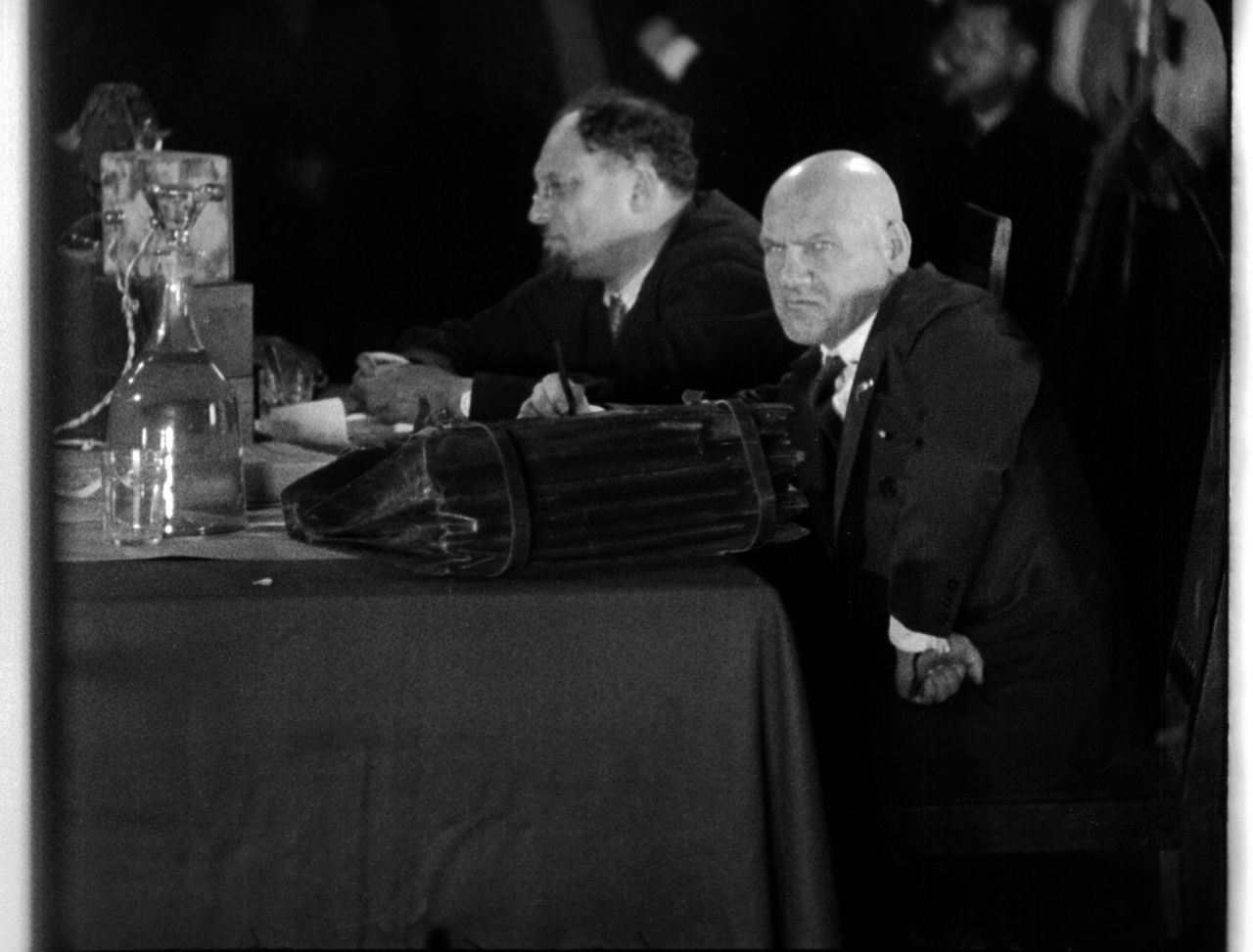 Товарищи Рамзин, Ларичев, Чарновский, Калинников и Федотов (впоследствии приговоренные к расстрелу), а также Куприянов, Очкин и Сытнин (по 10 лет лишения свободы) выступают так, что позавидуют артисты старого МХАТа. Станиславский — а он тогда, в конце 1930-го года, был жив и вполне мог присутствовать на процессе, — определенно сказал бы каноническое «Верю!» У них были причины играть убедительно: вероятно, власть дала им обещания. И даже сдержала — времена были сравнительно вегетарианские. Тогда ни один не был расстрелян, многие вышли раньше срока, а до того работали в шарашках на благо страны. Правда, многих все равно расстреляли несколько лет спустя. Некоторым повезло умереть своей смертью. Судьба троих осталась неизвестной. Видеть в финале этот титр, пожалуй, страшнее всего. Люди, определившие ход истории, были этой историей стерты, будто ластиком.