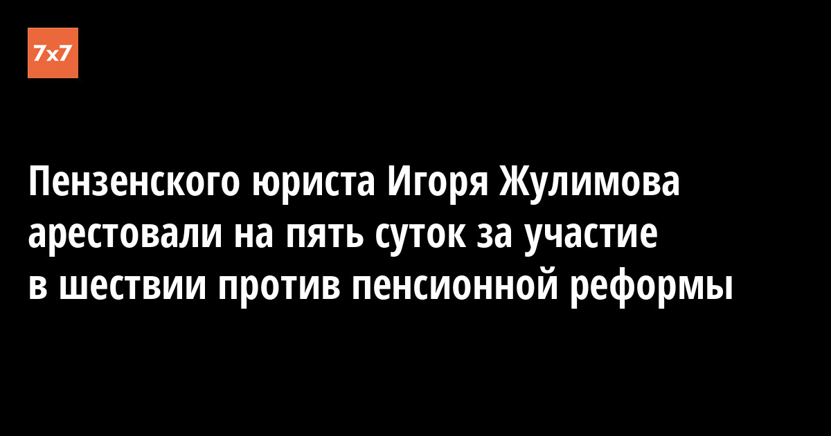 Ленинский районный суд Пензы 19 сентября назначил пять суток ареста Игорю Жулимову за участие в несанкционированном шествии противников повышения пенсионного возраста. Игорь Жулимов — профессиональный юрист и самостоятельно защищался в ходе судебного заседания. Ранее он выступал защитником на процессе организатора шествия Антона Струнина. Сразу после рассмотрения судом жалобы на приговор Струнину 18 сентября сам Жулимов был задержан полицией.