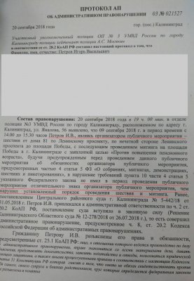По ее словам, Петрова задержали из-за акции против пенсионной реформы, которая прошла 9 сентября. На него будут составлять протокол по обвинению в повторном нарушении установленного порядка проведения митинга (ч.8 ст. 20.2 КоАП). С Петровым в отдел поехал юрист штаба Навального.
