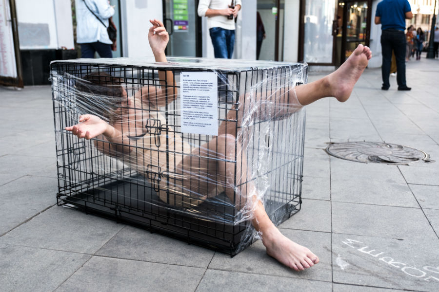 За день до открытия выставки, 14 сентября, Ненашева провела уличную акцию против пыток. В течение часа акционистка сидела в клетке, обмотанной прозрачной пленкой. Художница сказала, что будет повторять этот перформанс в разных городских локациях. На второй аналогичной акции Ненашеву задержали.