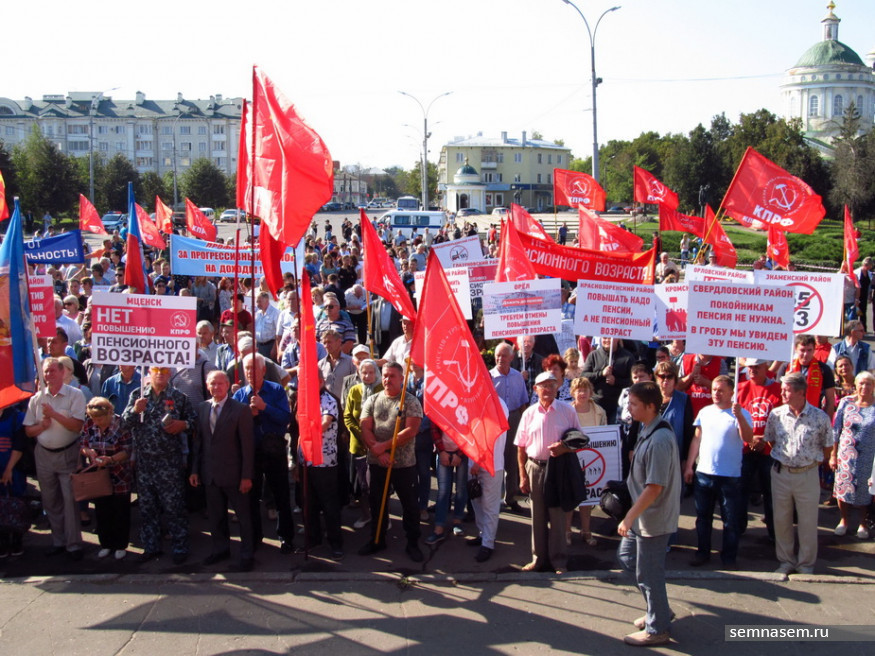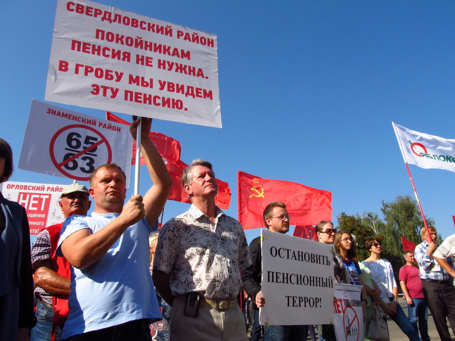 — Требуем снять правительственный законопроект пенсионной реформы с рассмотрения. Обращаемся к депутатам Госдумы, избранным от Орловской области, не поддерживать повышение пенсионного возраста и голосовать против его принятия. Кабинет министров Дмитрия Медведева, выдвинувшего антинародную инициативу — в отставку.