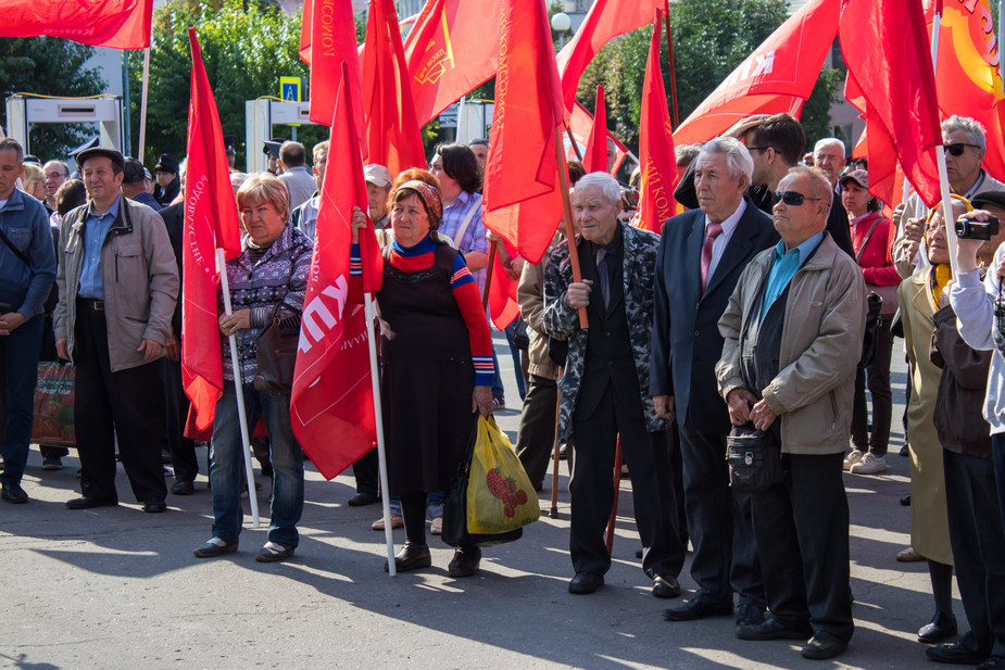 Митинг против повышения пенсионного возраста прошел в Чебоксарах 22 сентября. КПРФ заранее согласовала площадку перед ДК им. П. Хузангая с городскими властями. Митинг собрал около 300 человек, передал корреспондент «7x7», присутствовавший на акции.