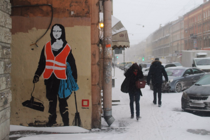 В Петербурге закрасили граффити, на котором Джоконда изображена в образе дворника. Оно находилось на стене дома номер 49 по улице Жуковского. Об этом сообщает «Собака.ru».