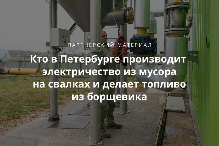 В партнерском материале с «Газпром нефтью» «Бумага» рассказывает о петербуржцах, которые занимаются альтернативной энергетикой: производят электричество из свалочного газа и собираются добывать технический спирт и уголь из борщевика.