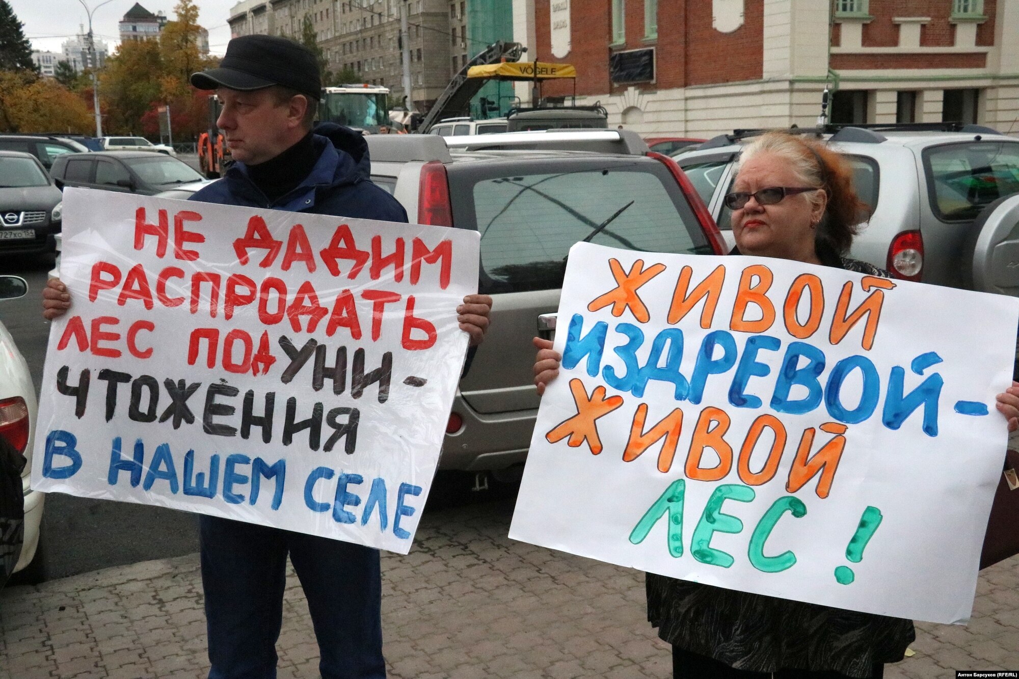 Жители одного из пригородных сел вышли на санкционированный пикет в центре Новосибирска с требованием прекратить вырубку леса на землях сельхозначения рядом с их домами, в пойме реки Издревая. Участок земли был продан региональными властями в частные руки. Хозяин ведет сплошную вырубку деревьев, ссылаясь на то, что закон ему это не запрещает.