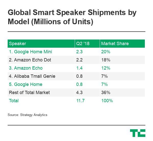 Не следует считать, что монополия Amazon — дело решенное. В битву уже ввязался Google, чья колонка Home Mini стала самой продаваемой в мире во втором квартале 2018 года. Соревнование жесткое — пока на основные «умные» продукты Amazon приходится 30% мирового рынка, но Google отстает лишь на три пункта.