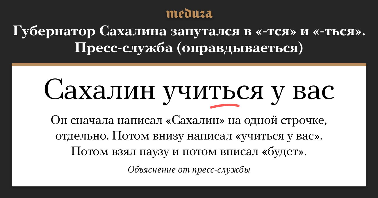 Глава Сахалина запутался в «-тся» и «-ться». Пресс-служба (оправдываеться)