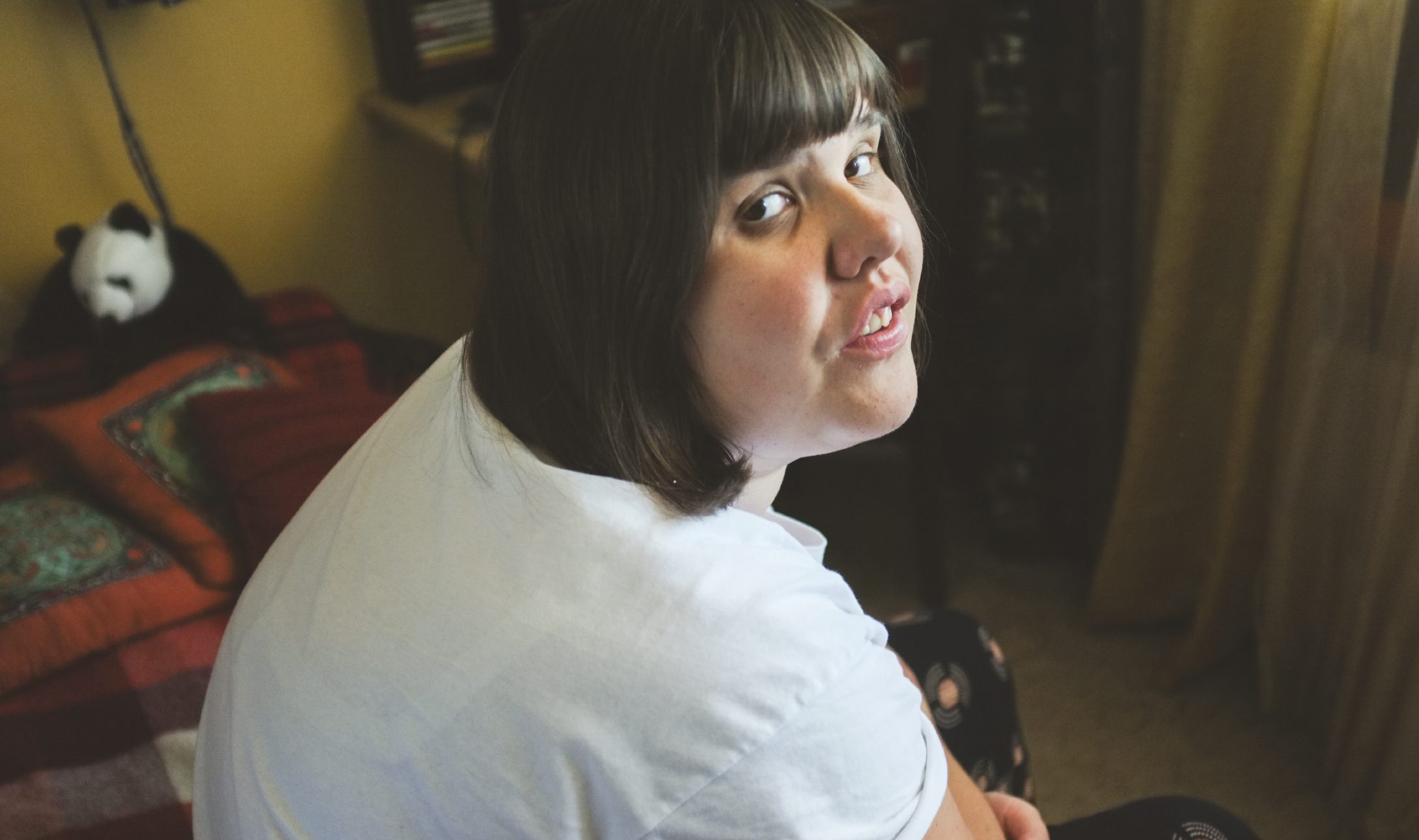 КатяФото: Лиза Жакова для ТД Мы сидим на диване в маленькой квартире, где Катя живет вместе с мамой. Между их кроватями шкаф-перегородка с книгами и дисками. Катя, не глядя, достает диск Шакиры, говорит, что очень ее любит. Мы вместе смотрим альбом с фотографиями, пьем чай и едим шоколадное печенье. Катя просит еще мороженого, но Марина не разрешает — на сегодня лимит сладкого исчерпан. Катя недовольна. И практически без паузы начинает кричать. Потом смотрит на меня, кричит еще громче и кусает себя за руку. Повторяет на одной ноте: «Не хочу разговаривать, не хочу разговаривать, не хочу разговаривать». Мы с Катиной мамой Мариной выходим на балкон, чтобы пообщаться. Катя остается одна, но кричать не перестает. Когда я ухожу, она по-прежнему кричит и на прощание снова повторяет, что не хочет говорить.