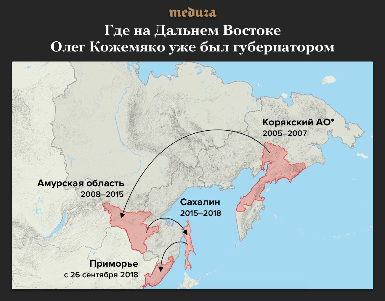 И — картинка (о незаменимости). Олег Кожемяко столько пропутешествовал по Дальнему Востоку, что, кажется, Ерофей Хабаров, Семен Дежнев и Витус Беринг, вместе взятые, путешествовали меньше. Вчера Кожемяко стал губернатором Приморья — это уже четвертый регион, которым он руководит, за последние 13 лет.