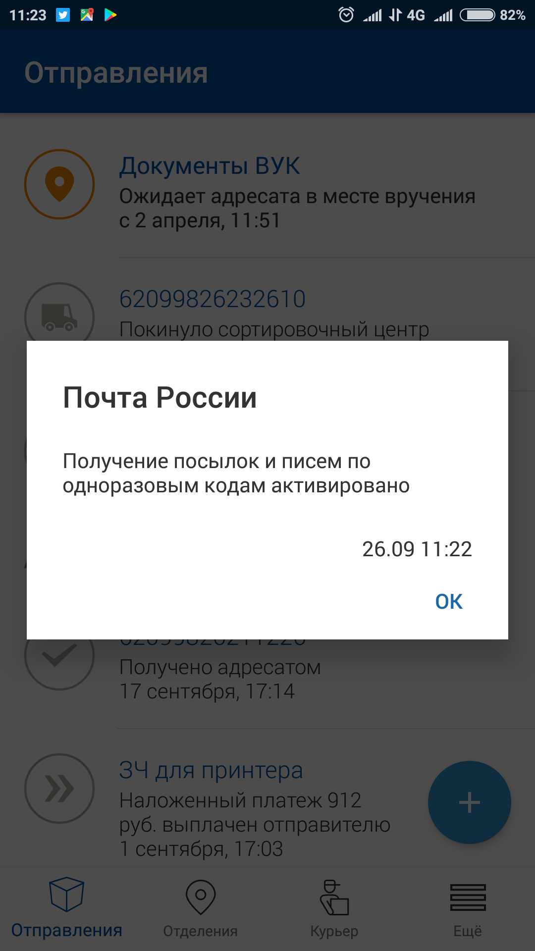 Вчера оператор почтового отделения поставила в тупик вопросом - А вы на почте регистрировались? Переспросил дважды еще, но с ответом не нашелся. Приложение есть, уведомления приходят - оно? Оказалось, не оно. Чтобы ускорить процесс обслуживания в отделении предложили пройти верификацию, чтобы подтвердить свою личность и избавиться от необходимости таскать с собой паспорт. Пришел в отделение, трек-номер продиктовал, оператор номер в компьютер ввела, а ты диктуешь ответное СМС-сообщение и дело в шляпе. Нечто подобное частенько встречается при оплате всякого разного в интернете с пластиковой карты - ввел код из СМС-сообщения и покупка оплачена :-) А вот тут такая же фигня, только тебе без лишнего мозгоклюйства и заполнения извещения выдадут твое отправление. Прогресс, блин...