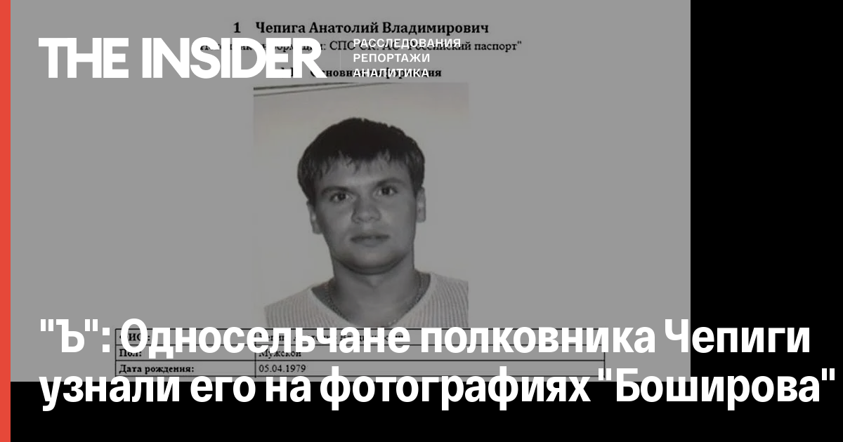 В ходе совместного расследования The Insider и Bellingcat удалось установить личность «Руслана Боширова», одного из двух сотрудников ГРУ, обвиняемых в отравлении Скрипалей. Им оказался полковник ГРУ и «Герой России» Анатолий Чепига.
