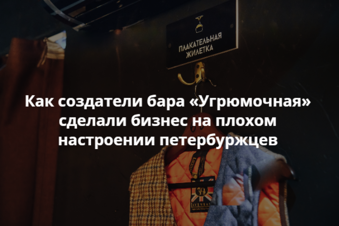 В середине сентября в Петербурге заработал уже второй бар для грустных «Угрюмочная». В заведении есть жилетка для рыданий, служба психологической поддержки и коктейли в пистолете и шприце. О баре написали десятки СМИ и пабликов, а посетители говорят, что в заведении практически не бывает свободных мест.