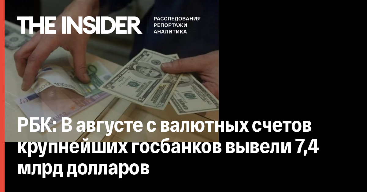 РБК: В августе с валютных счетов крупнейших госбанков вывели 7,4 млрд долларов