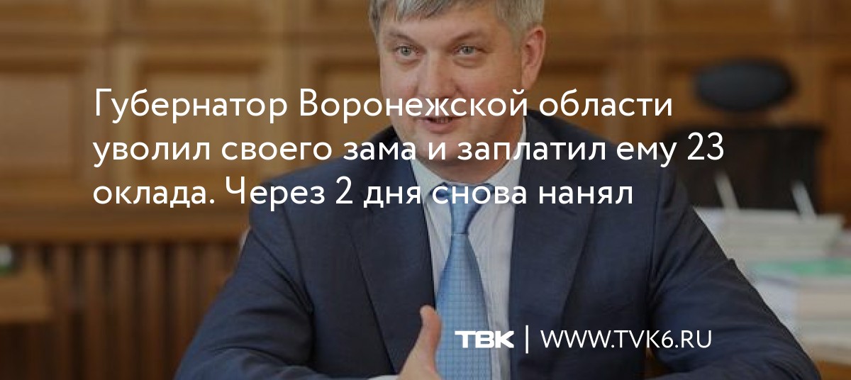 Губернатор Воронежской области уволил своего зама и заплатил ему 23 оклада. Через 2 дня снова нанял
