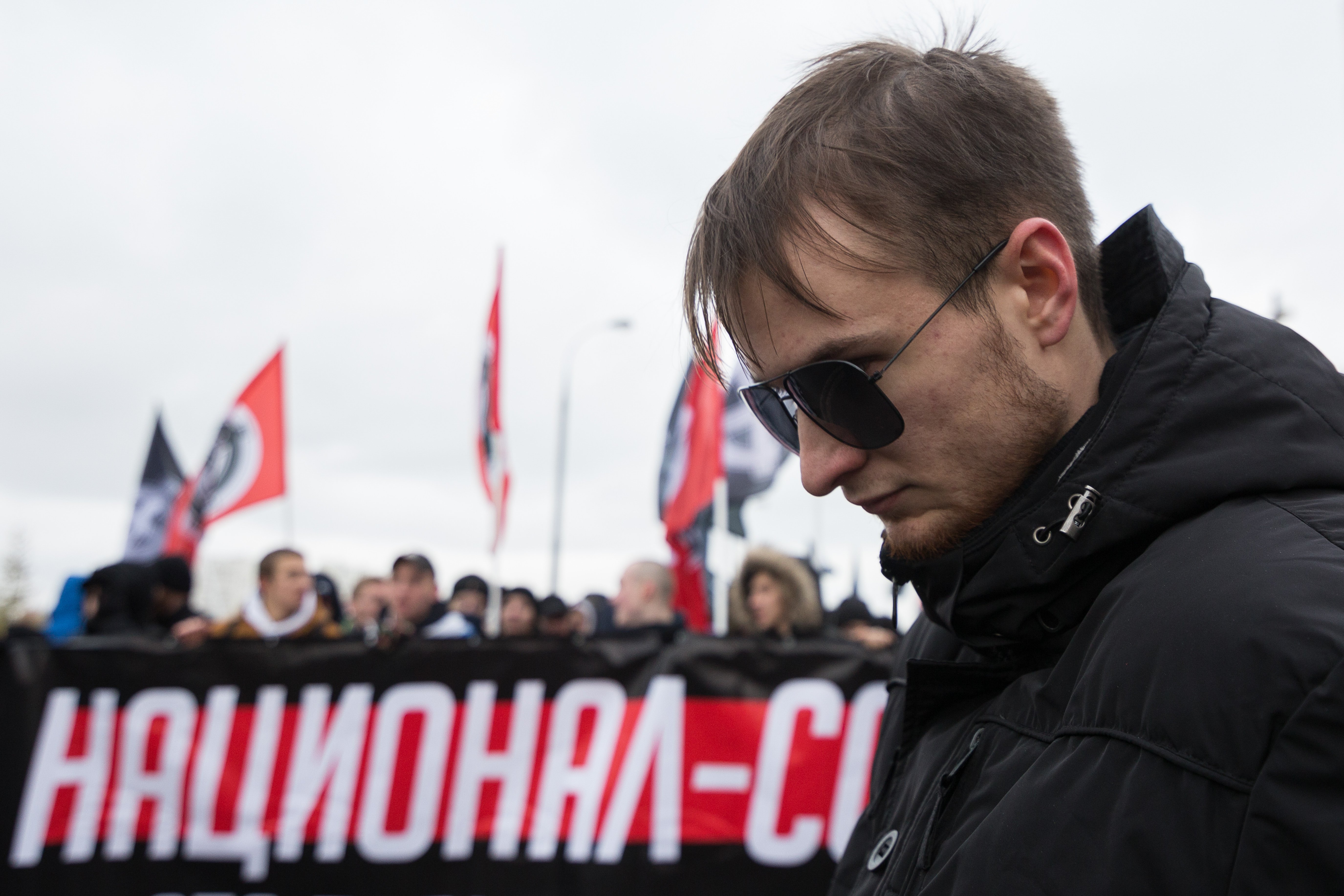 Унылое утро 4 ноября 2016 года. Московские правые по традиции собрались в Люблино на «Русский марш». Перед началом митинга полицейские отобрали у них несколько баннеров, которые участники акции планировали развернуть по пути к сцене.