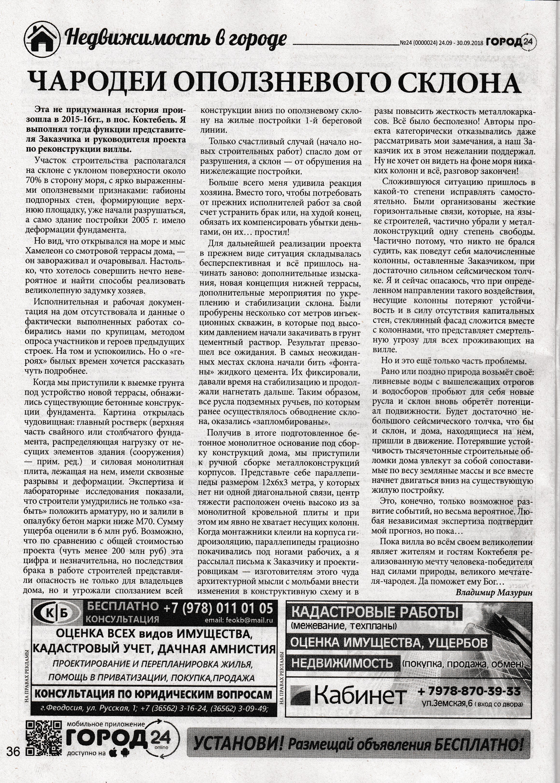 – Там был описан мой конкретный случай, когда я в 2016 году строил виллу в Коктебеле. Вилла, конечно, необыкновенно красивая, но и хозяин этой виллы удивительный чародей, потому что он сумел обмануть законы природы: построил виллу там, где строить нельзя – на оползневом склоне. Вилла стоит на опасном участке, поэтому может обрушиться при сейсмических толчках.