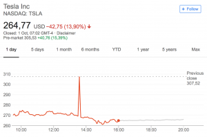 - В пятницу акции Tesla упали к закрытию торгов на 14%.