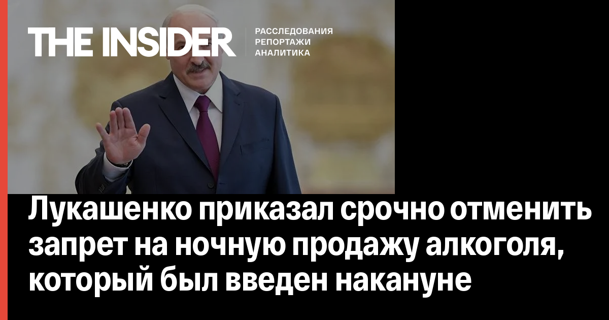 Президент Белоруссии Александр Лукашенко распорядился в течение суток отменить ограничения на продажу алкоголя в ночное время, которые накануне вступили в силу в Минске и некоторых районах страны. Об этом сообщает «Интерфакс».