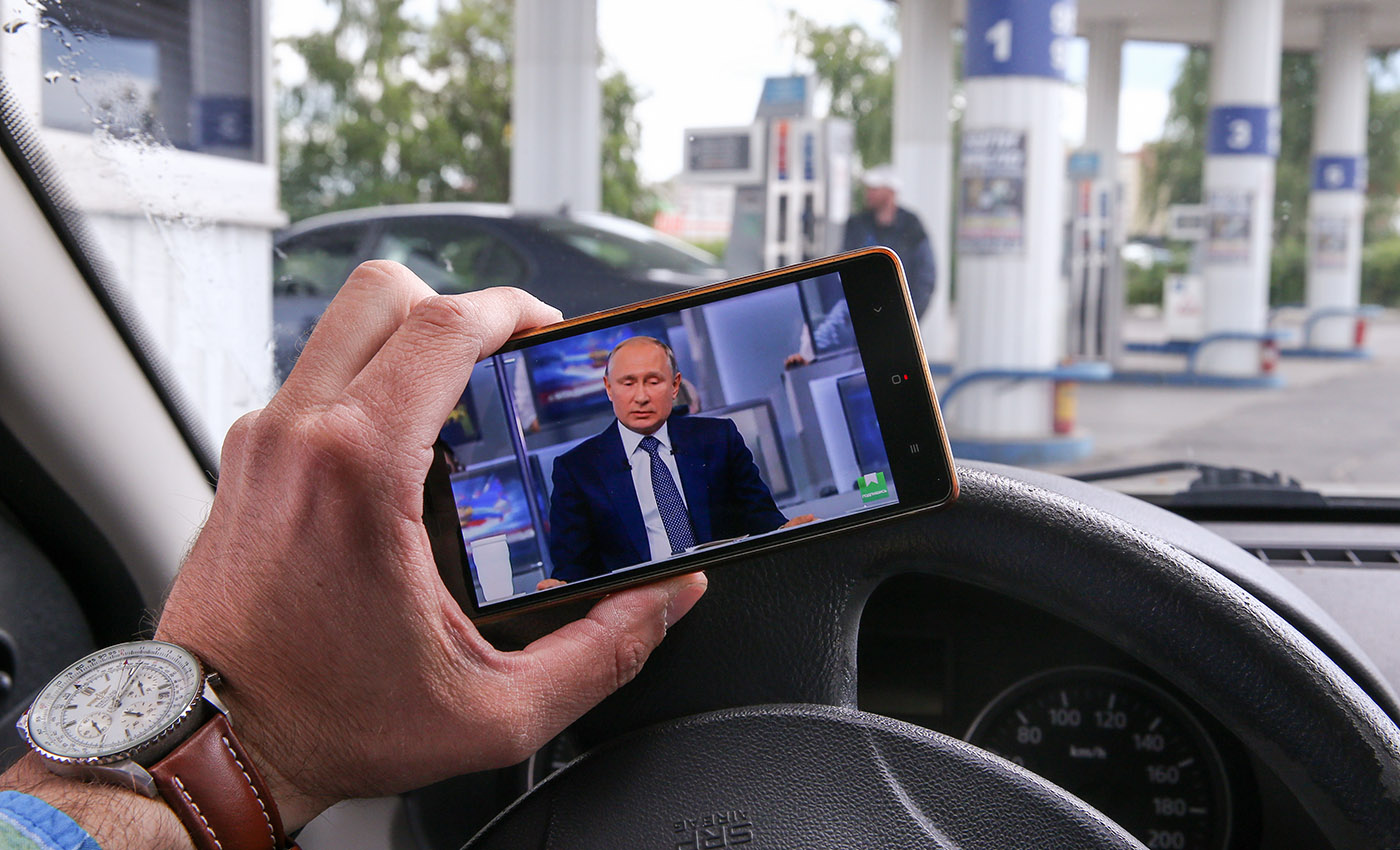 Во время трансляции «прямой линии с Владимиром Путиным» в 2018 году. Фото: Александр Рюмин / ТАСС