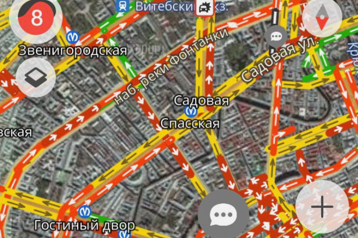На дорогах Петербурга — пробки в семь-восемь баллов. Больше всего пробок на КАД, а также в центре города — на Садовой улице, на Невском проспекте и на набережной Фонтанки.