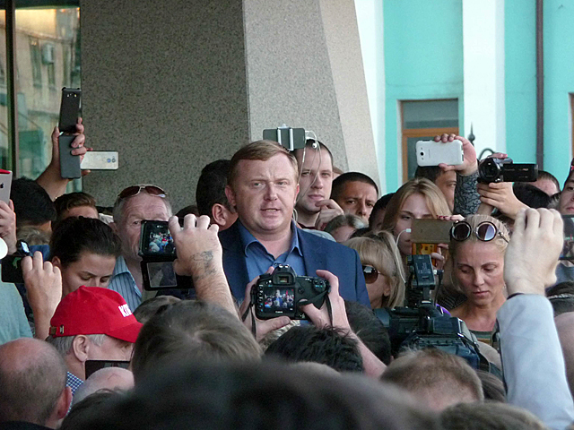 Андрей Ищенко на митинге у здания администрации Приморского края против фальсификации результатов выборов губернатора AdmiralHood/Wikimedia Commons Напомним, по результатам обработки 100% бюллетеней врио губернатора Приморья («Единая Россия») Андрей Тарасенко побеждал с результатом 49,55% голосов. Лидировавший в течение всего дня голосования кандидат от КПРФ отставал на 7 тысяч голосов (его результат — 48,06%). При этом на нескольких участках в ночь на понедельник были подписано повторные протоколы, которые давали заметно больше голосов Тарасенко — если учитывать только первоначальные данные, то победителем стал бы Ищенко.