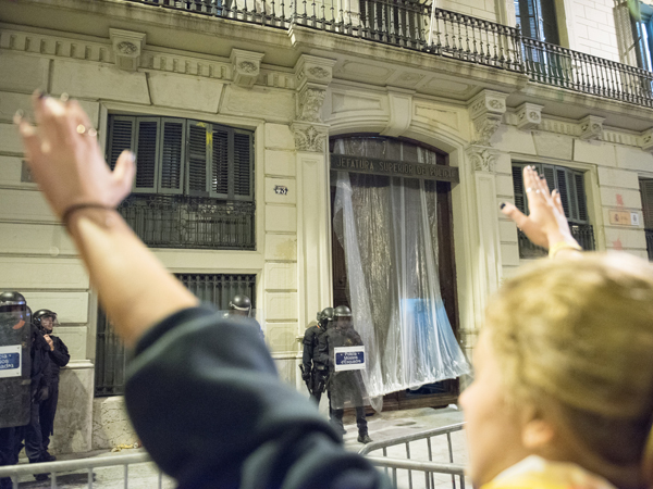 Reuters сообщает, что в понедельник в разных местах Каталонии протестующие пытались заблокировать железнодорожные пути и автомагистрали, в Барселоне тысячи человек приняли участие в демонстрации в поддержку независимости, а чтобы разогнать демонстрантов, собравшихся перед зданием каталонского регионального правительства, потребовалось вмешательство полицейского спецназа.