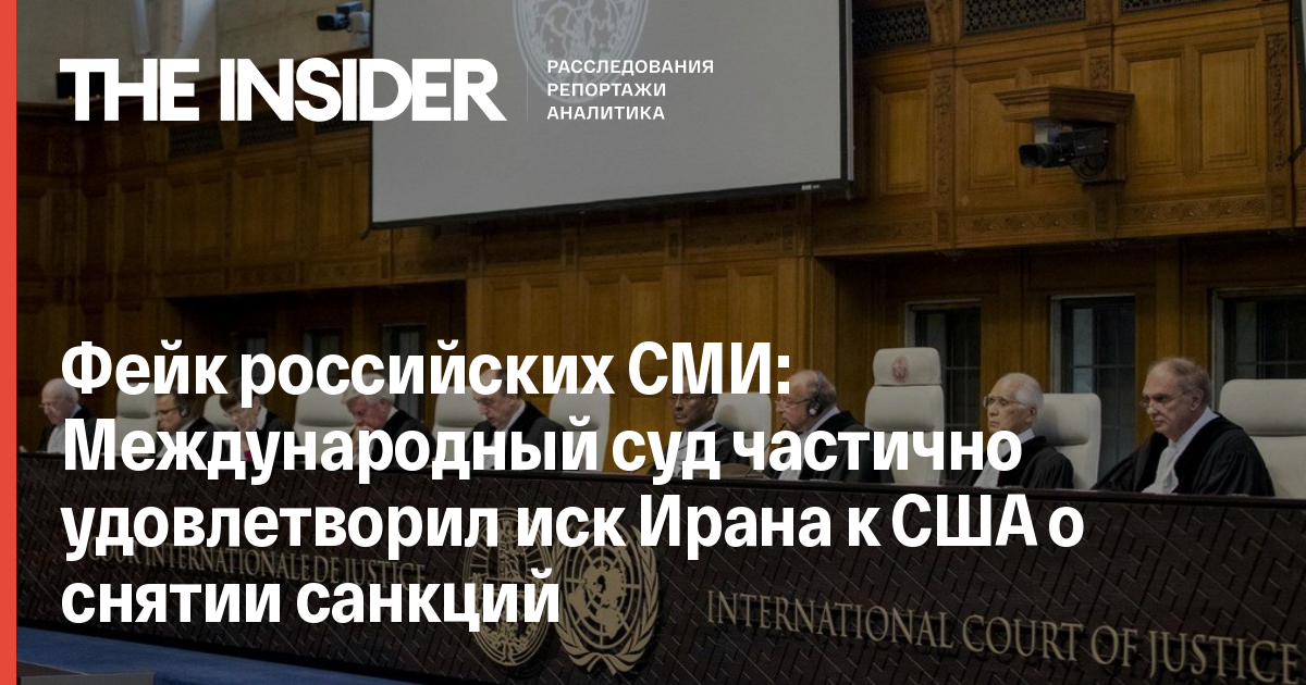 Фейк российских СМИ: Международный суд частично удовлетворил иск Ирана к США о снятии санкций