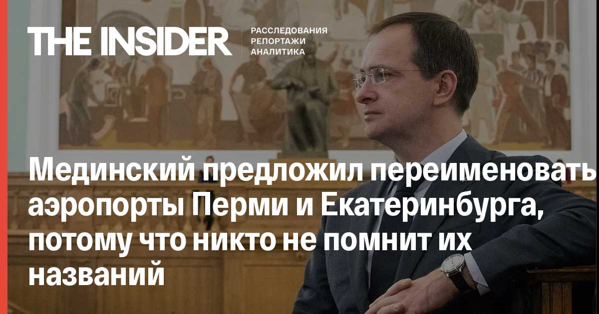 «Никто не может вспомнить, как сейчас называются аэропорты в Перми и Екатеринбурге, поэтому логично было бы сменить названия», – объяснил свою инициативу министр культуры.