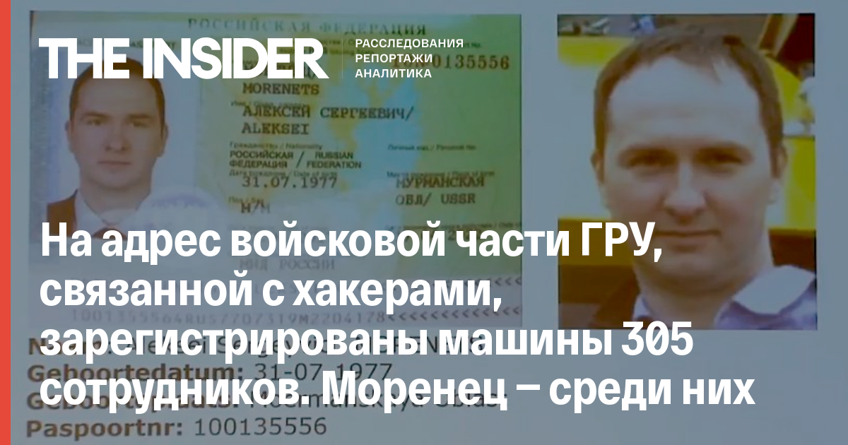 На адрес войсковой части ГРУ, связанной с хакерами, зарегистрированы машины 305 сотрудников. Моренец — среди них