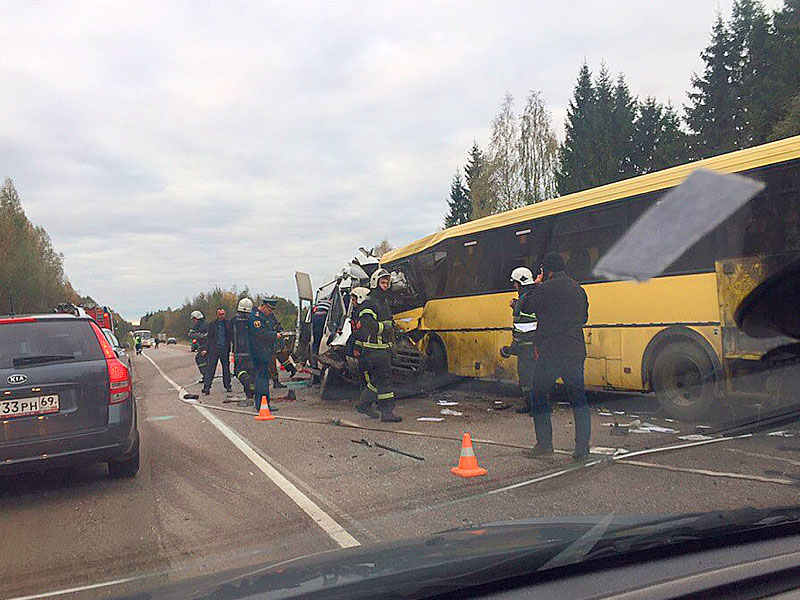 В ДТП с маршруткой и автобусом под Тверью погибли 13 человек